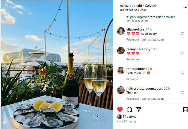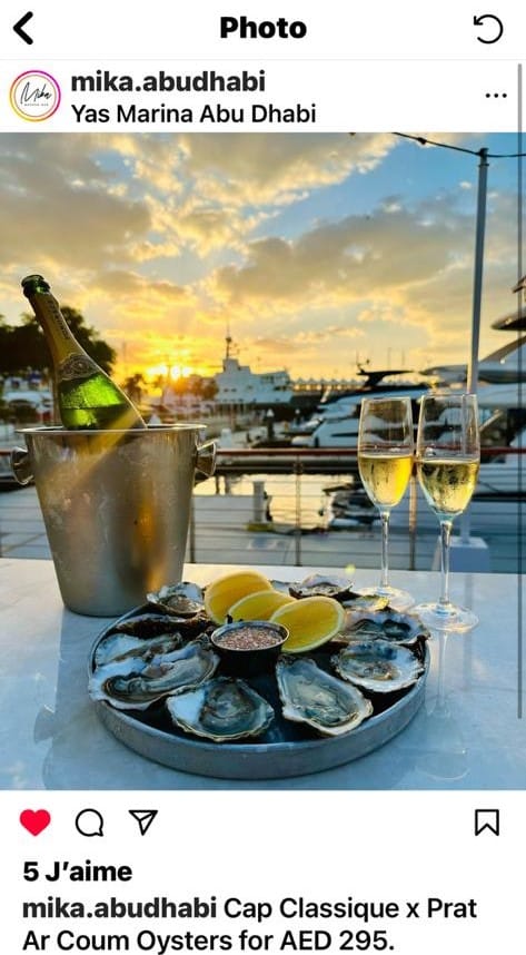 Nos huîtres de Prat-Ar-Coum étaient de la partie puisque servies aux 1ères loges au restaurant Mika. Mika est un restaurant méditerranéen qui surplombe la marina d’Abu Dhabi. Les convives étaient au bord de la piste avec une vue à couper le souffle sur les yachts.