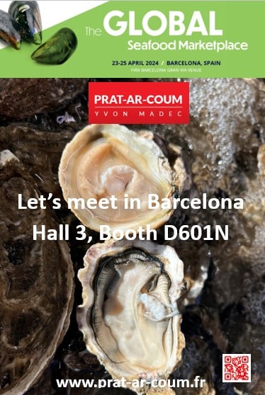 Du 23 au 25 avril, les huîtres de Prat-Ar-Coum seront présentées au salon international des produits de la mer à Barcelone. Un temps fort de rencontres avec les professionnels du monde entier. RDV sur le stand Hall 3 Pavillon France, région Bretagne stand D601N A bientôt !!